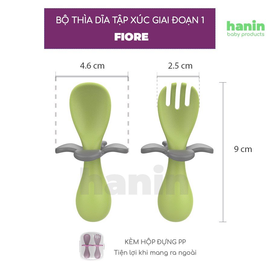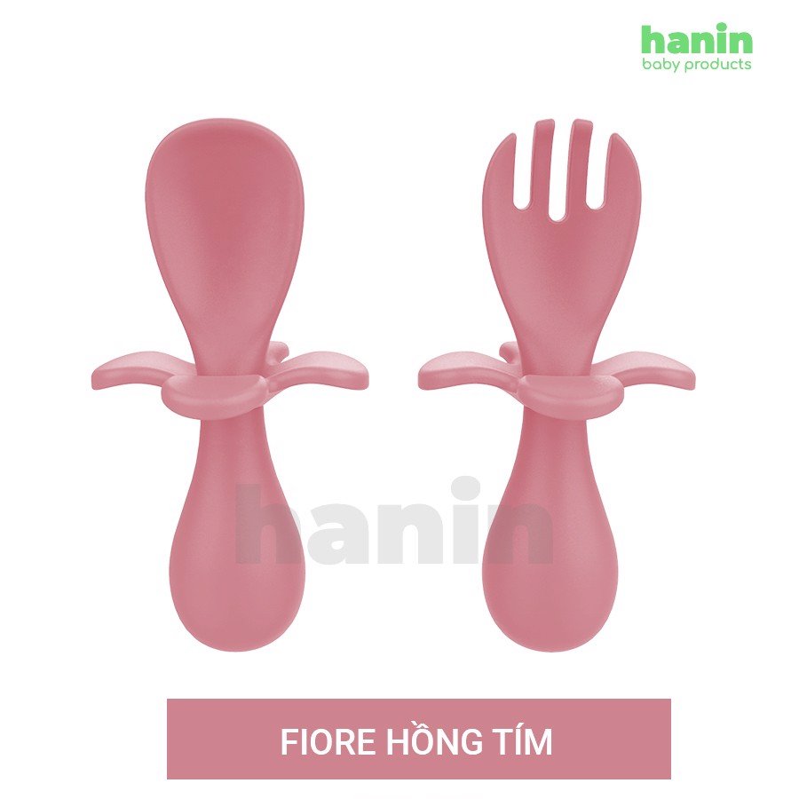 - Việc bé cho thìa dĩa vào miệng là không thể tránh khỏi! Vì thế Hanin có thiết kế bông hoa là phần chặn bằng silicon để bé không thể chọc sâu thìa dĩa vào miệng ghê nôn oẹ!