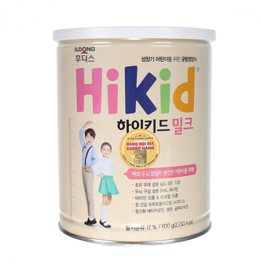 Sữa bột HIKID 600g là sản phẩm dinh dưỡng đến từ tập đoàn Ildong Food'is Hàn Quốc với đặc điểm tập trung chủ yếu vào việc tăng chiều cao cho bé. Hikid mang đến bữa ăn dinh dưỡng cân bằng hỗ trợ trẻ phát triển cao lớn và khỏe mạnh. Thành phần sữa không chỉ cung cấp đầy đủ 5 dưỡng chất chính cần thiết cho sự tăng trưởng đồng đều của trẻ mà còn tăng cường hơn 60 dinh dưỡng tốt cho sự phát triển khỏe mạnh của bé về miễn dịch, tiêu hóa và phát triển trí não. Sản phẩm dùng cho trẻ từ 1 - 9 tuổi, có hương vị vani thơm ngon, dễ uống, kích thích vị giác bé yêu.