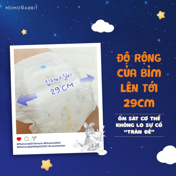 Độ rộng phần sau bỉm tăng cường tới 29cm. Bỉm ôm sát cơ thể, không còn nỗi lo tràn bỉm.